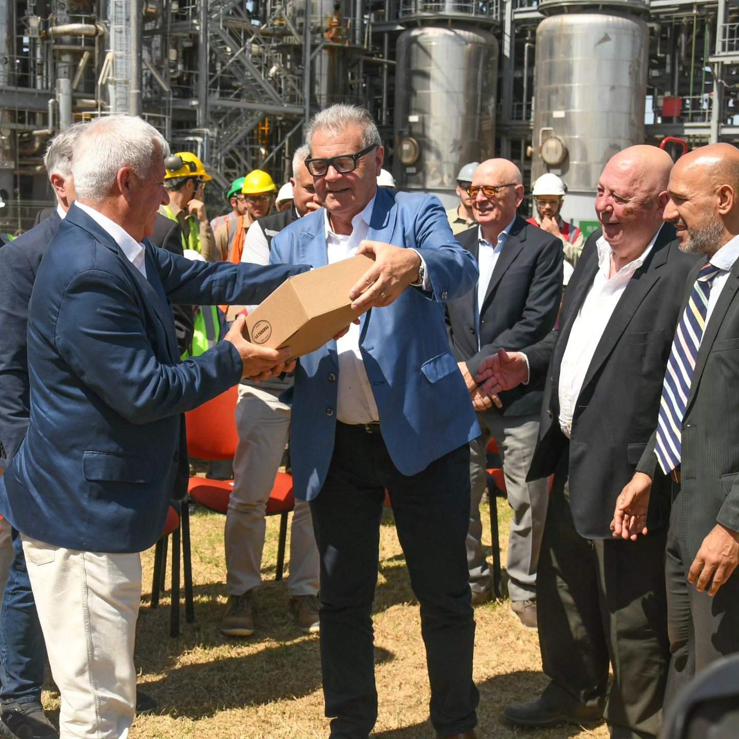Estuvieron presentes Juan Cano, gerente de Promaíz; Carlos Urquiza, gerente de Golden; Osmar Núñez, gerente de AGD; Roberto Urquía, titular de AGD; José Castelli, presidente de Bunge Argentina; Sergio Busso, ministro de Bioagroindustria; Juan Manuel Llamosas, Asesor del Gobierno provincial para los departamentos del Sur; Aldo Etcheverry, intendente de Alejandro Roca; y Graciela Bissotto, legisladora departamental.