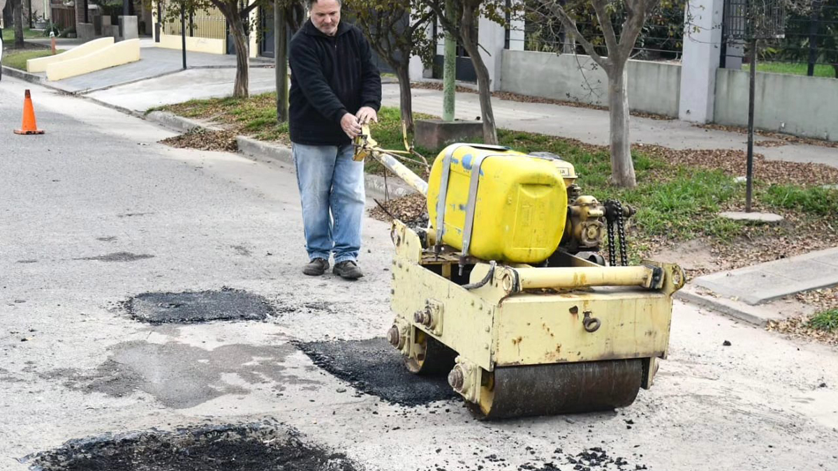 Utilizando el sistema de pavimentación caliente, continúan adelante los trabajos de bacheo en Alejandro Roca.