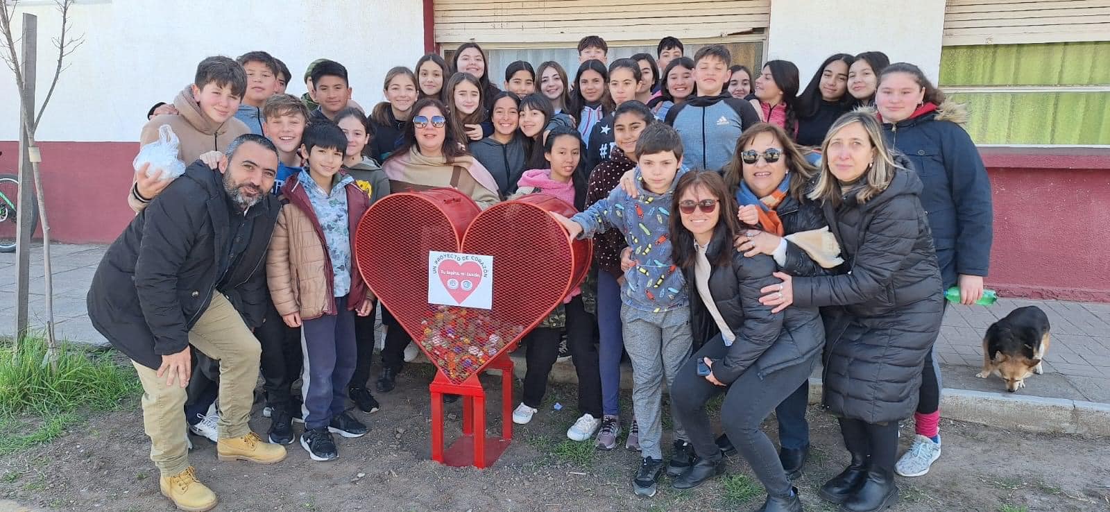 Días atrás, efectivizaron la donación del canasto recolector de tapitas como una acción dentro del Proyecto el que es llevado a cabo desde hace más de 7 años por los estudiantes de primer año y el Área de Ciencias Naturales.