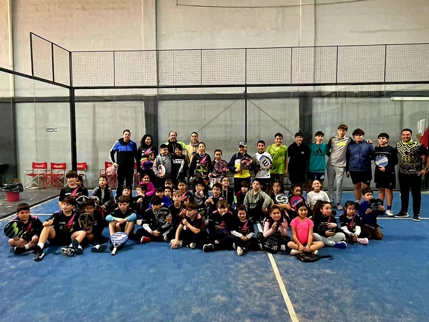 Deportistas de 5 a 16 años pertenecientes a la escuela Innova Pádel de nuestra localidad formaron parte de un encuentro que congregó a 60 menores de tres escuelas deportivas de Río Cuarto, Adelia María y Alejandro Roca en el complejo "Solo Pádel".