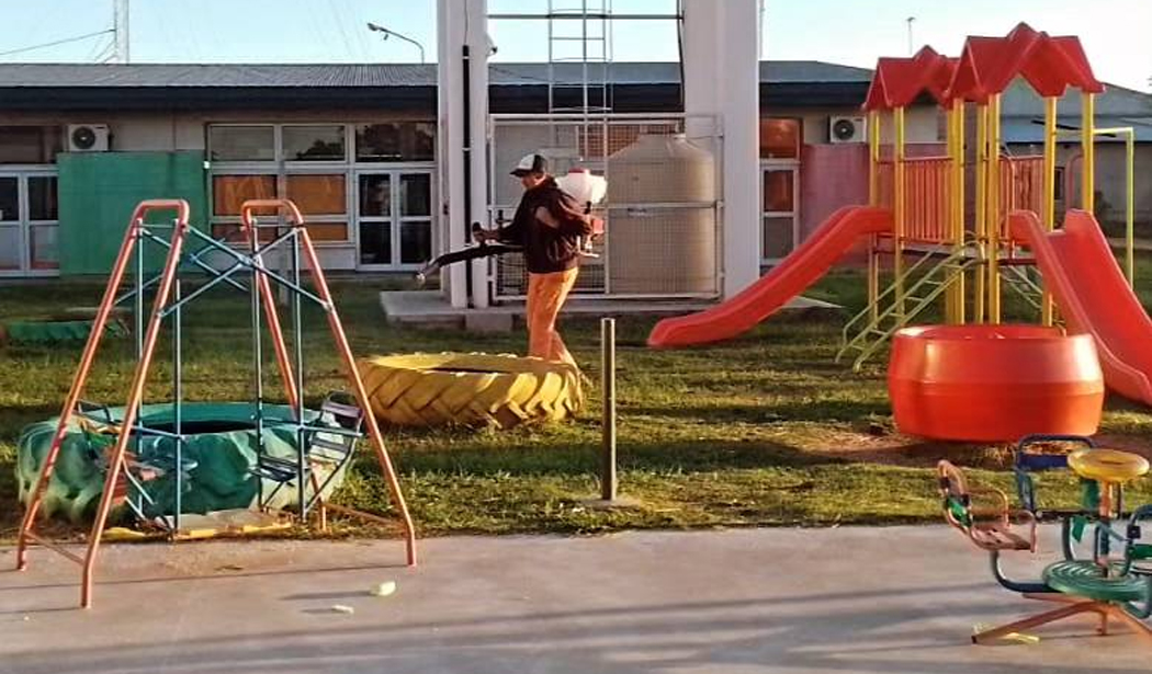 En el marco de las distintas acciones que se llevan a cabo para contrarrestar el avance de la enfermedad del dengue, se llevaron a cabo tareas de fumigación en sectores donde se encuentran establecimientos educativos locales.